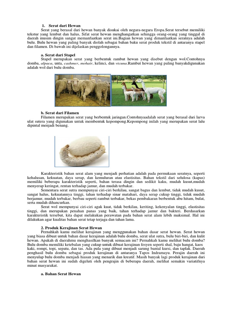 Iqbal5571 iqbal5571 04 12 2018 seni sekolah menengah pertama 5 poin. Kerajinan tangan dari serat hewan hewan adalah salah satu makhluk hidup yang ada di dunia ini. Serat tersebut memiliki tekstur yang lembut dan halus sifat serat hewan menghangatkan sehingga orang orang yang tinggal di daerah musim dingin sangat memanfaatkan serat ini. Tumbuhan sudah barang tentu memiliki fungsi atau manfaat untuk kesehatan tubuh kita.