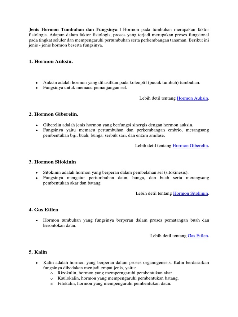 Auksin adalah untuk mempengaruhi berbagai poses pertumbuhan antara lain kecepatan pertumbuhan perkecambahan pembentukan bunga dan buah serta penuaan dan pengguguran. Hormon gas etilen adalah hormon yang dihasilkan dari buah yang sudah tua. Macam macam hormon pada tumbuhan dan fungsinya. Sitokonim adalah hormon yang berfungsi untuk merangsang pembelahan sel mempercepat pembungaan dan pertumbuhan buah serta berperan dalam perkecambahan.